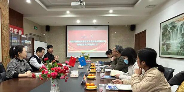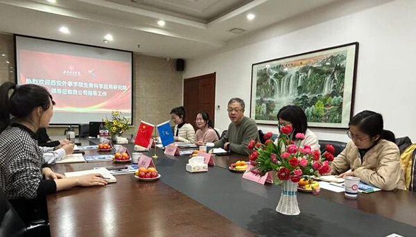 12月9日,西安外事学院生命科学应用研究院任建平院长带领博士团队一行莅临陕西健驰生物药业有限公司(简称“健驰科技”)考察交流,公司董事长王其兵、运营副总黄广军、销售总监朱莎陪同接待。