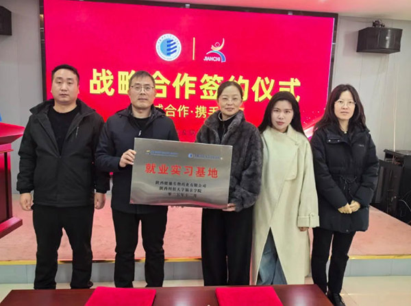 12月30日,陕西科技大学镐京学院与陕西健驰生物药业有限公司(简称“健驰科技”)在健驰生产厂区举行就业实习基地签约授牌仪式。陕西科技大学镐京学院医药工程学院药物制剂专业带头人李景丽、药学教研室主任马翠霞、药学教研室专任教师周向文,健驰科技厂区生产副总邓开学、质量部部长赵茂成、行政部部长魏皎等领导和代表参加了此次会议。